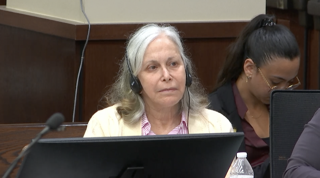 A new addition from the first two days of jury selection, Donna Adelson has an audio device to assist her hearing while the jurors are beign screened. She is wearing a pair of wired headphones.