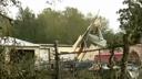 On Dothan Road, fences were flattened by falling branches and strong winds. Across the street, a vacant mobile home for sale was torn from its foundation and flipped on its side.
