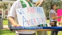 "This is a set of circumstances that, to me, seem un-American," said protester Mimi Minnick. "Monroy has lived in this country for over 20 years he's committed no crime. He's a home owner, married to a U.S. citizen, his child is a U.S. citizen. He's well respected in his community these are the kind of immigrants that we welcome in our community."
