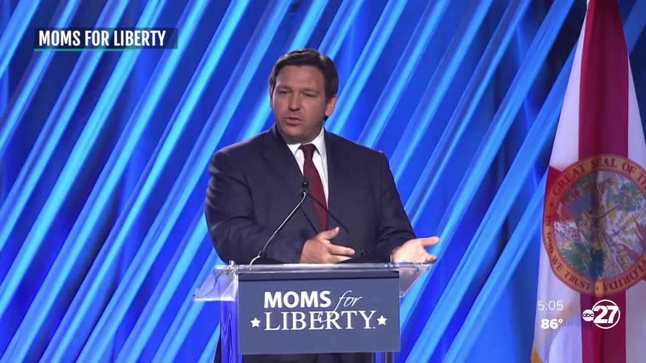 During a campaign speech at Tampa's Moms For Liberty summit Friday, he touted his prioritization of the economy during the pandemic, his push to return students to in-person learning, plus a slate of new state laws.