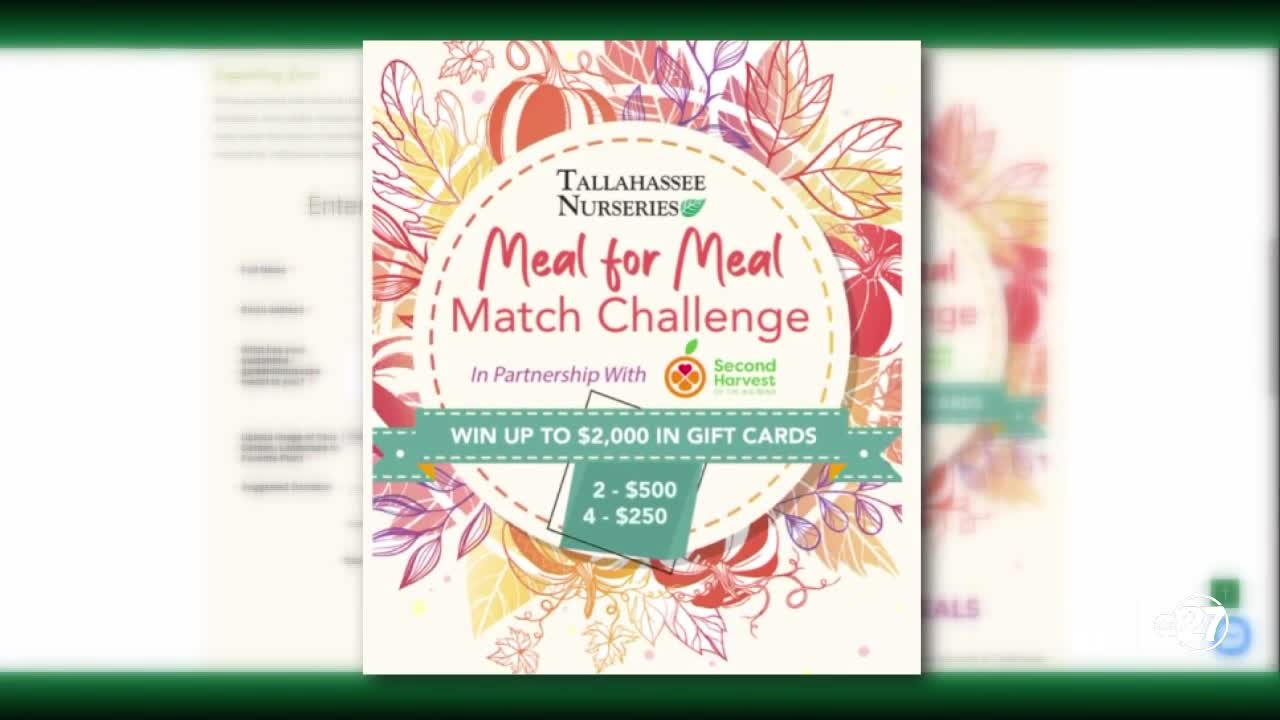 TALLAHASSEE, Fla. (WTXL) — Second Harvest is partnering with Tallahassee Nurseries for a Meal for Meal Match Challenge.