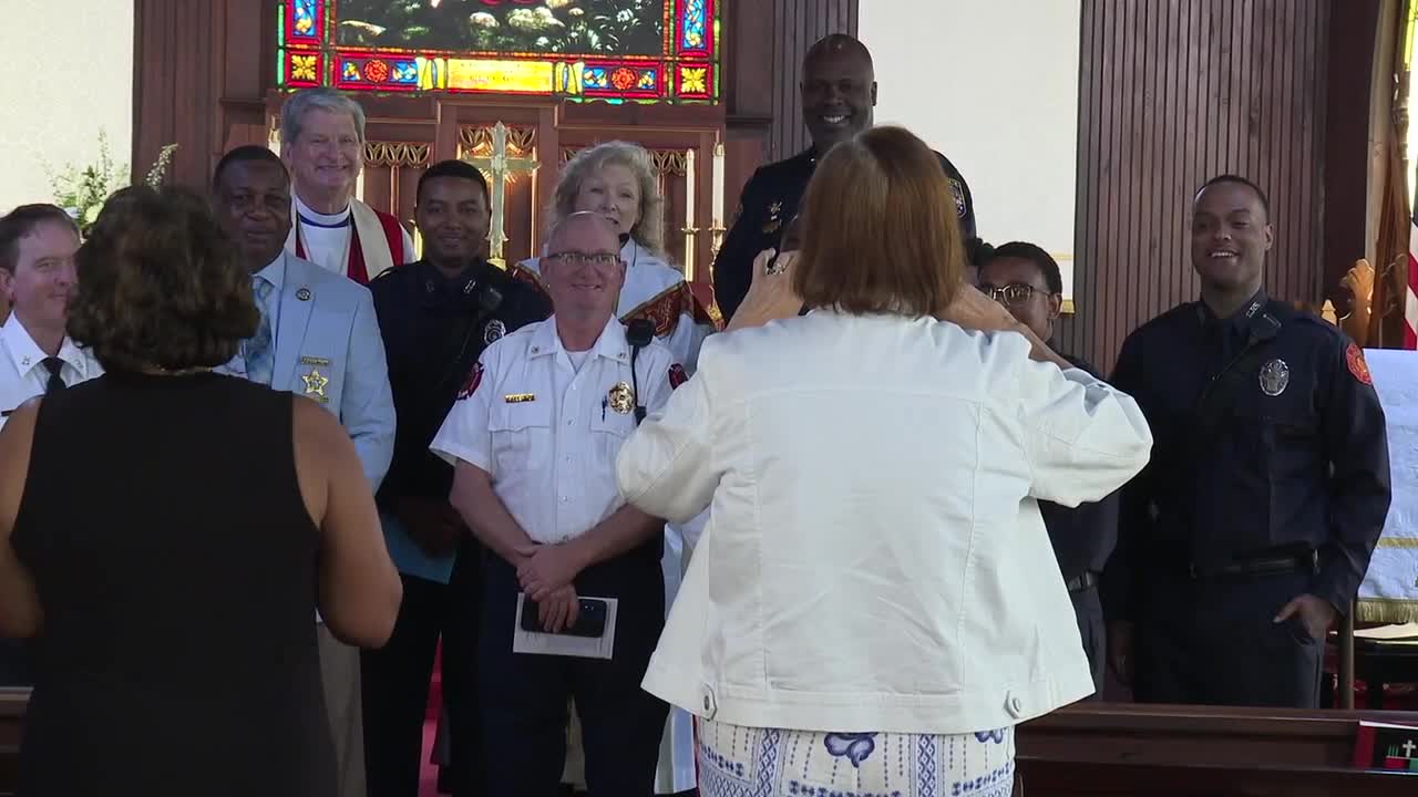 Following the service, the church hosted a luncheon and blood drive to continue the support beyond the sanctuary, firefighter Richardson says, "The atmosphere and the people just coming together and being one" is what keeps him coming back.