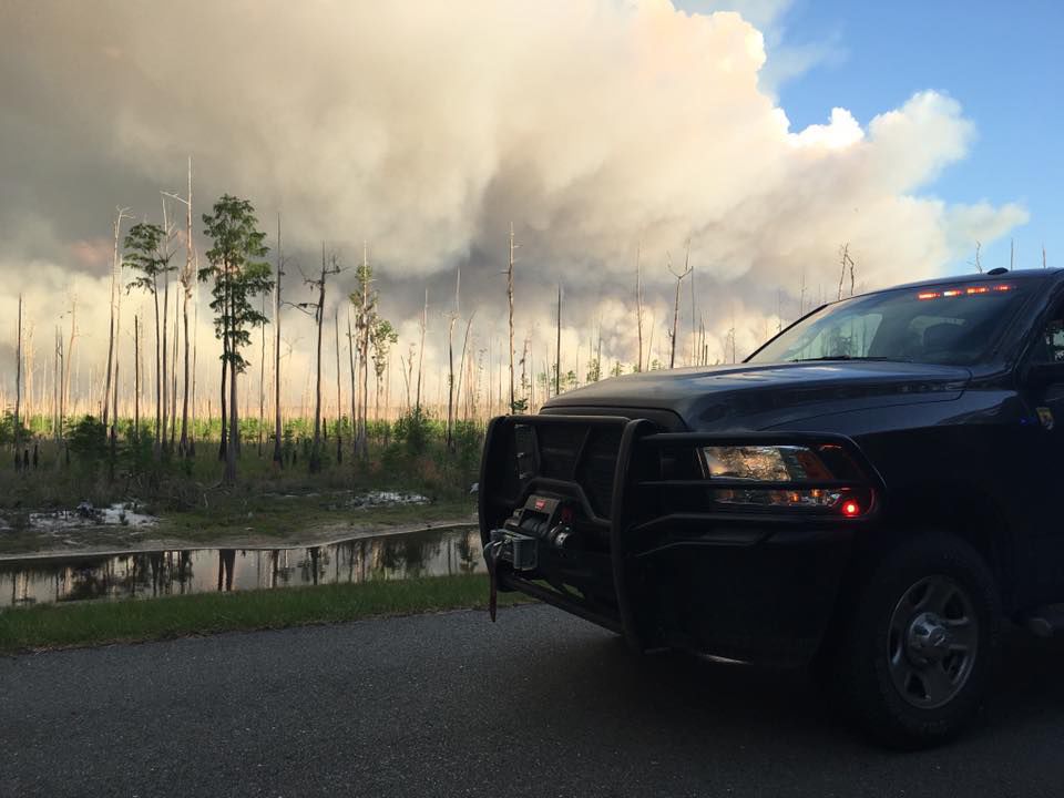 Rainfall fails to stop wildfire near Georgia-Florida line