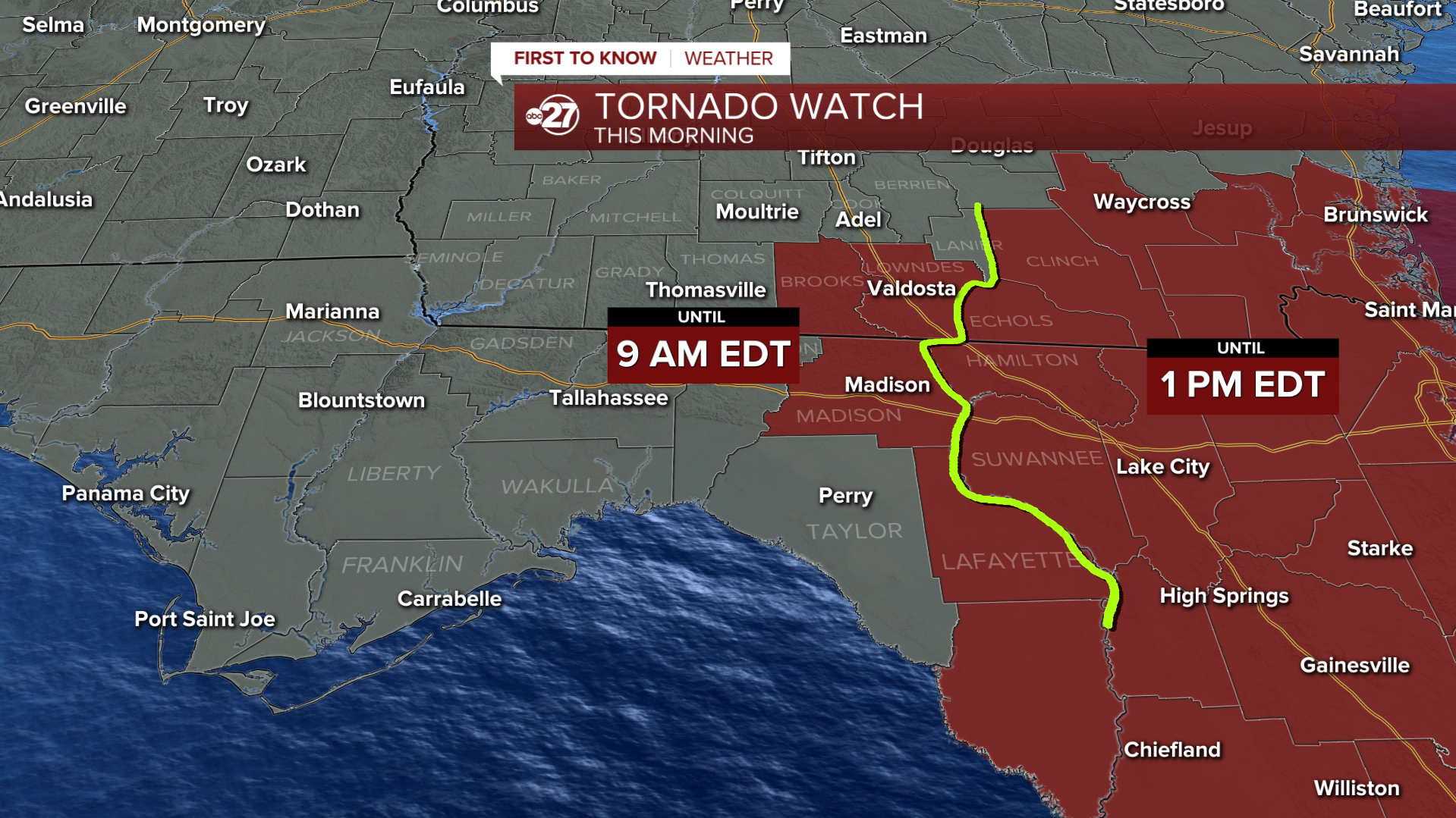 Tornado watch in effect for eastern portions of the Big Bend and South Georgia
