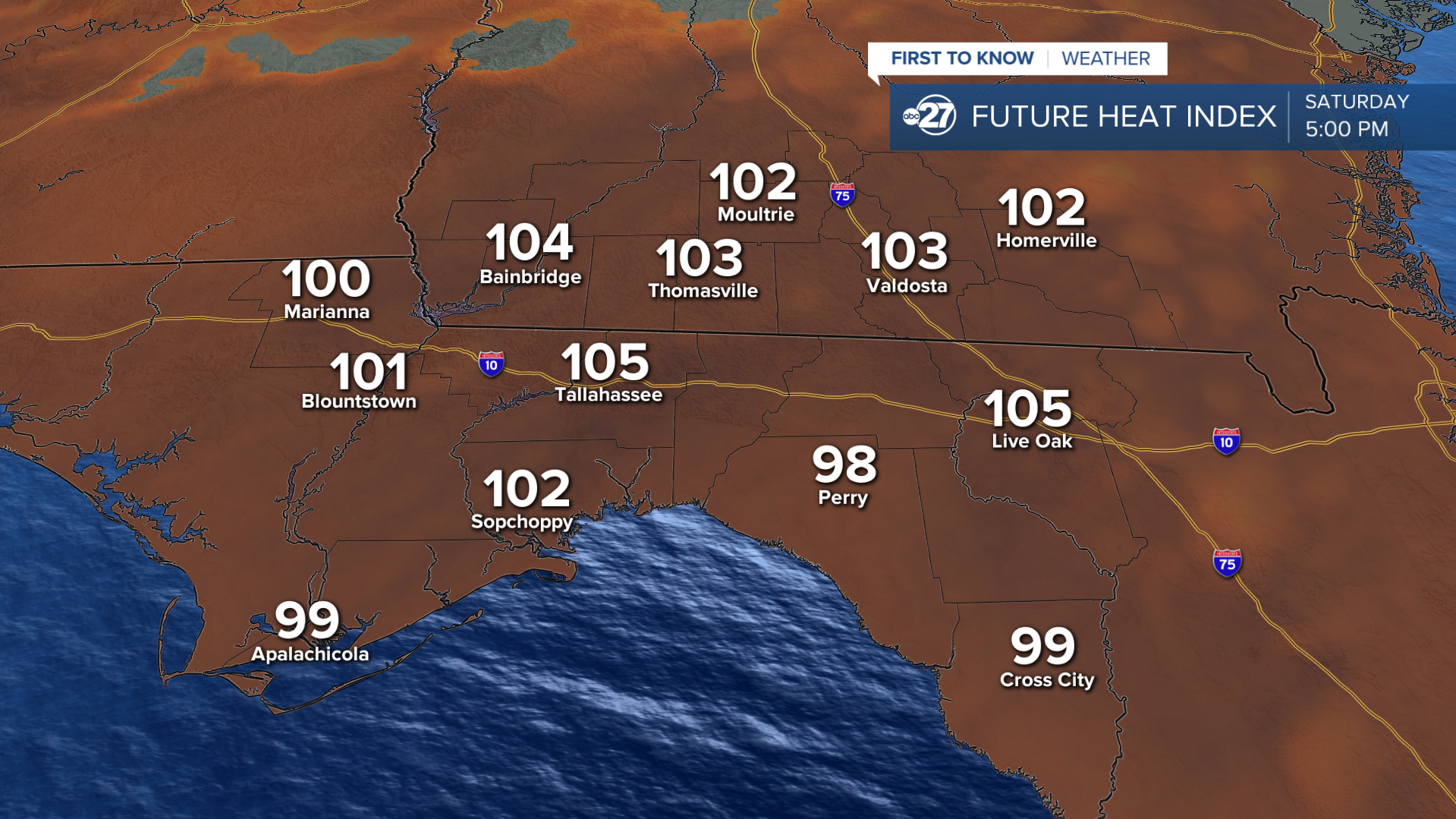 Feel-like temperatures return to the 100s this weekend with pop-up storms