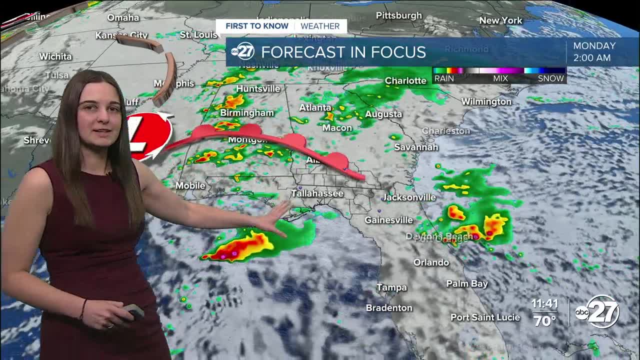 TALLAHASSEE, Fla. (WTXL) — A low pressure system with a cold front attached to it is slowly making its way towards the Big Bend and south Georgia. This will bring lots of rain as it moves through in the beginning parts of the week.