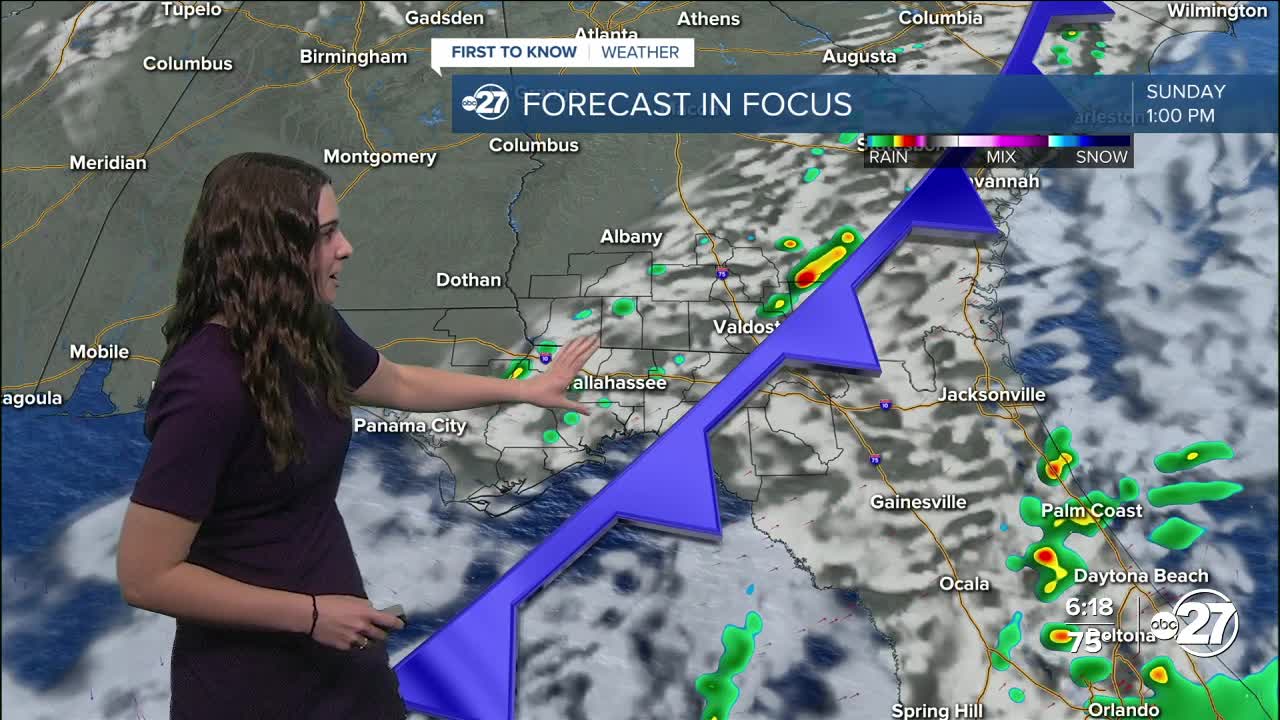 Come Sunday, more showers and storms are expected as the cold front sweeps through.