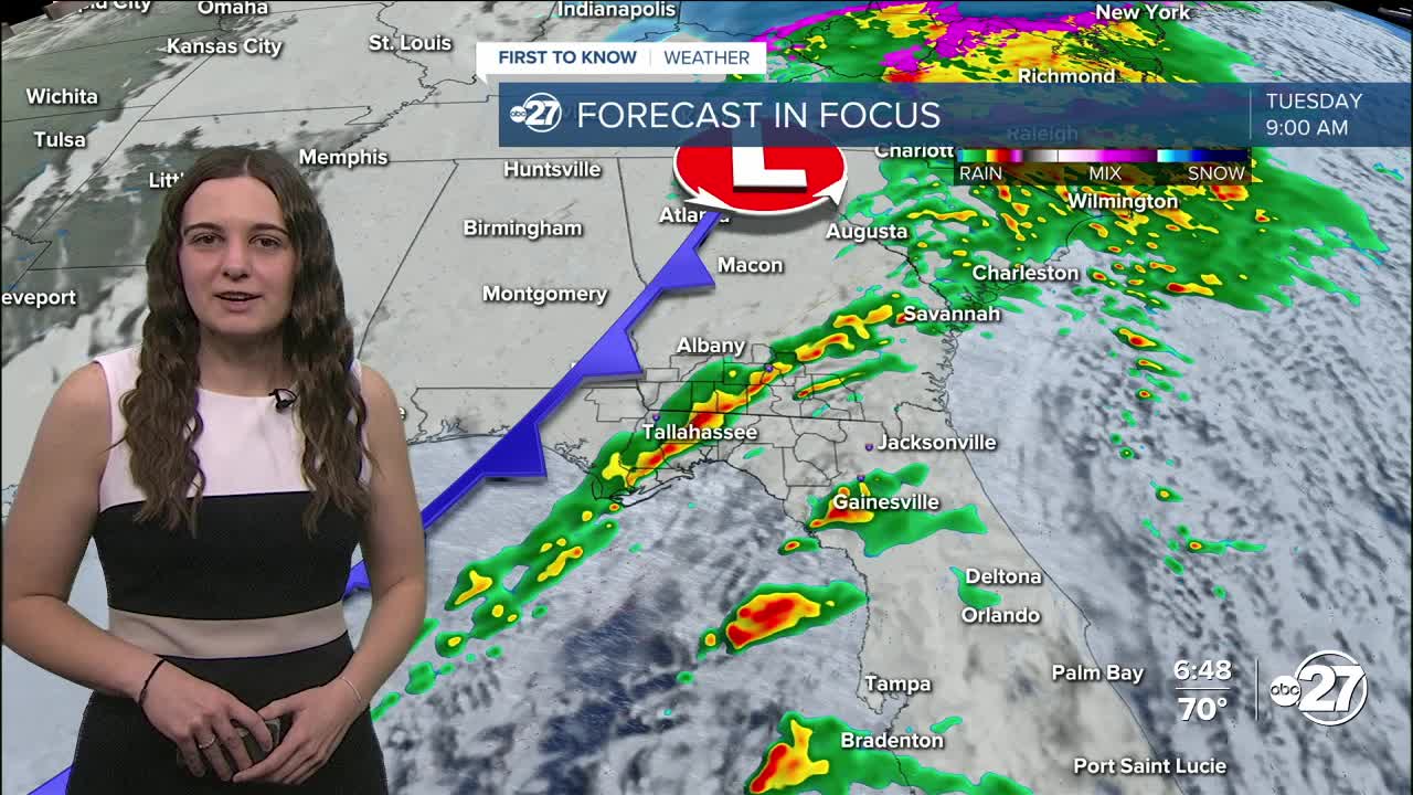 TALLAHASSEE, Fla. (WTXL) — The cloud cover will continue to build as we move throughout the night Sunday with the first showers arriving as early as 4-5 p.m. Monday.