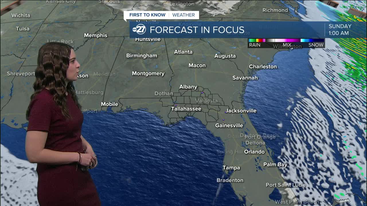 Temperatures are sitting comfortably in the 60s and will drop down to to the 30s overnight tonight. Although we are warmer Saturday, freezing temperatures are possible overnight prompting a Freeze Warning for Clinch, Echos, and Hamilton county and a Frost Advisory for Suwannee county.