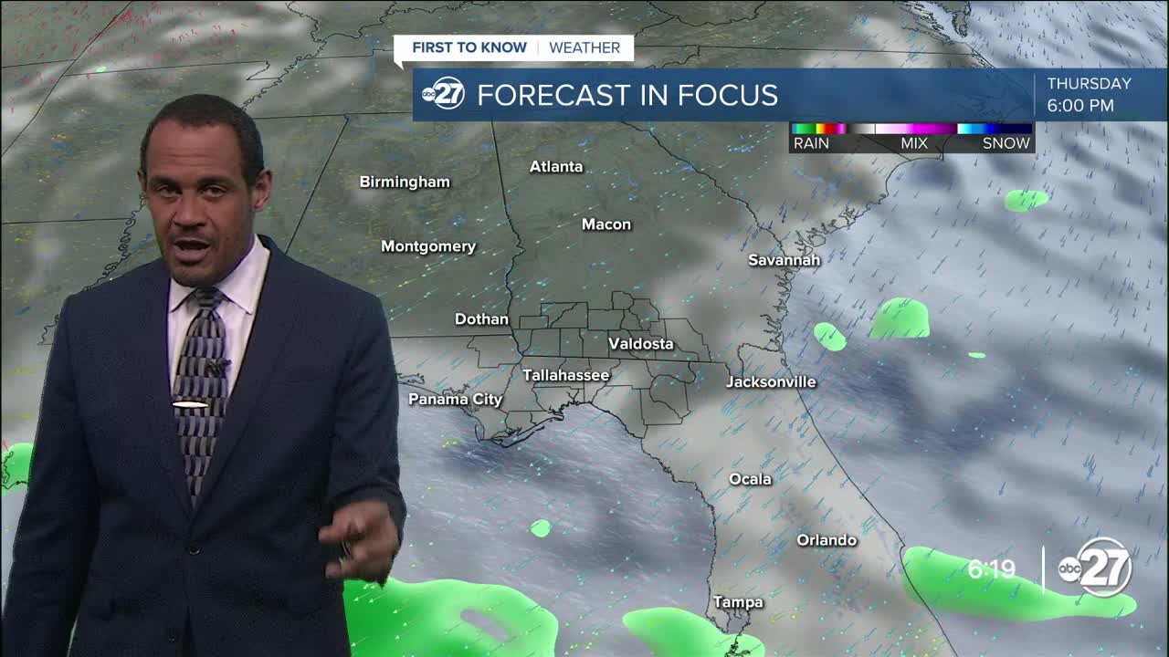 TALLAHASSEE, Fla. (WTXL) — The circulation around Tropical Storm Imelda — a system that will stay off the Florida east coast and not come this way — is directing the northeast wind and breeze that we're having. It's also helping to transport patches of cloudiness across the eastern extent of the state line region. Among some of those clouds have been a few passing showers, especially east of US 319. Those areas will remain susceptible to brief showers through the evening, with lesser chances in the tri-state area.