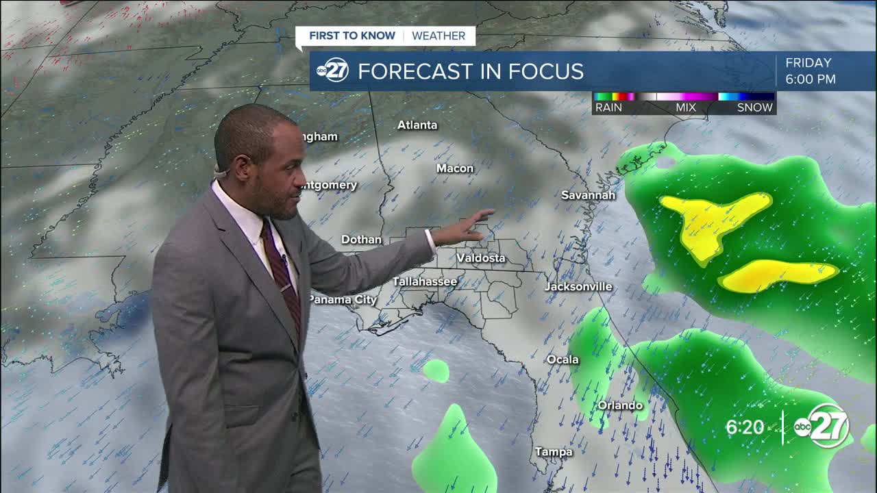 We get an initial push of dry air to get morning lows deeper into the 60s area-wide Friday. The dry flow will be enhanced by a disturbance that will move northeast parallel to the southeastern U.S. coastline. This will bring morning lows by Sunday into the 50s as highs will top out near average in the lower 80s with increasing sunshine.