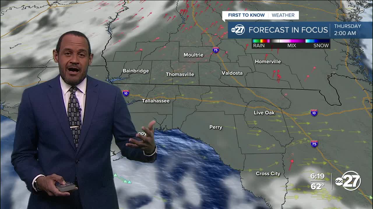 TALLAHASSEE, Fla. (WTXL) — A persistent layer of clouds — caused by low-level moisture amid a cool air mass — will not break all too quickly this evening. This blanket of clouds will hold temperatures relatively stable and cool, in the lower 60s early in the evening, falling a bit into the upper 50s after sunset, and eventually to the lower 50s before sunrise. While measurable rain is not expected, there will be times of fine mist or drizzle in the thickest and lowest layers of clouds tonight.