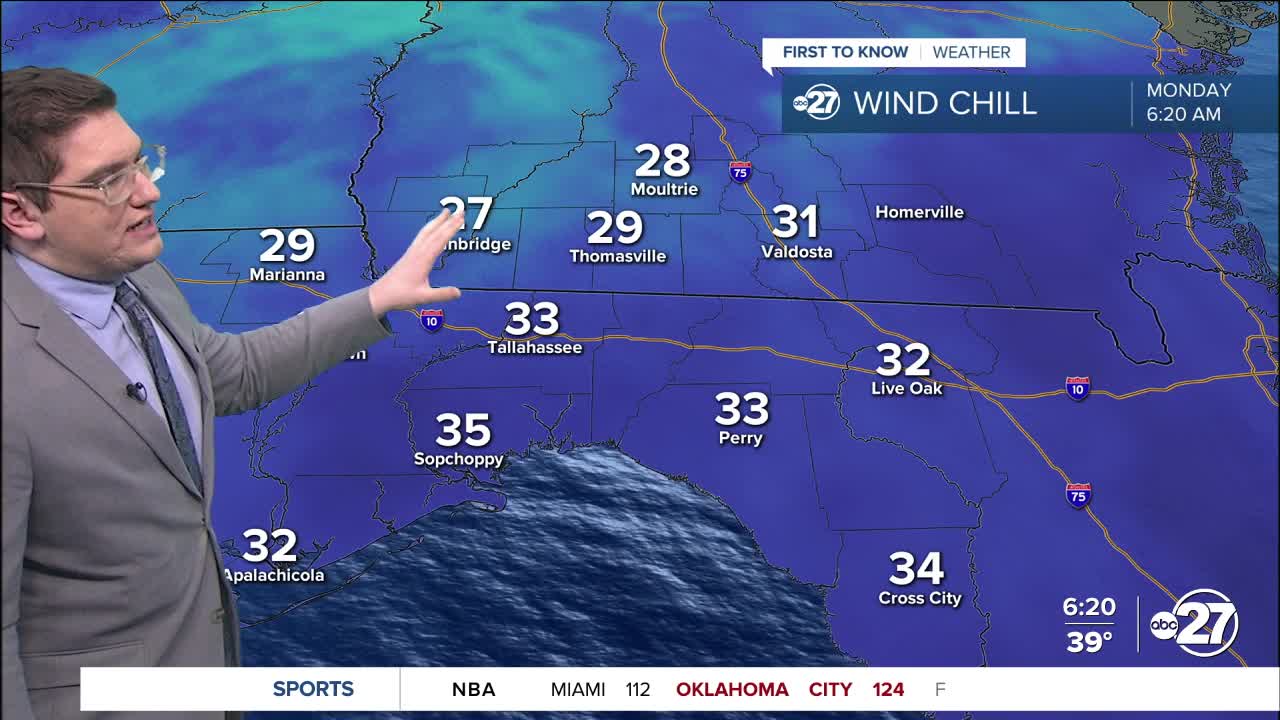 TALLAHASSEE, FL. — Thanks to that front over the weekend we are over 20º colder this morning, than we were this time yesterday morning.