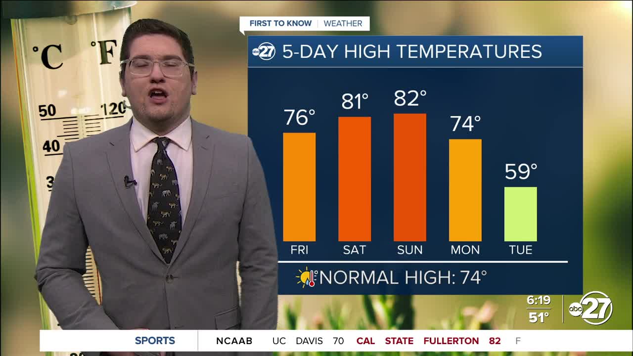 We warm back up this weekend, with a chance for spotty showers Sunday. This wont be enough to cancel plans, but you may want to have a plan B just in case. This will lead to another front for Monday which could bring storms once again. Temperatures behind this front will be even cooler, giving us one last taste of winter before official spring next Friday.