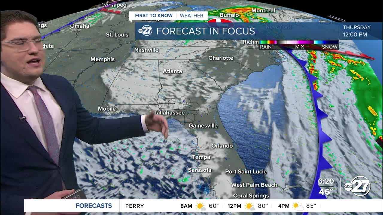TALLAHASSEE, FL. — It is a chilly start out there today. Low dewpoints are allowing our mornings to get even cooler. Temperatures will slowly climb out of the upper 40s and lower 50s through the morning. We will stay well below average through the afternoon, likely not breaking out of the 60s, but we will slowly warm into the weekend.