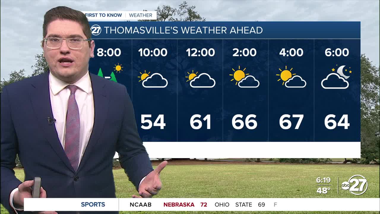 The direct line to the Gulf will continue the trend of foggy mornings, and partly cloudy to mostly cloudy days. There is dense fog scattered across the Big Bend and south Georgia this morning, with temperatures in the low to mid 40s. The fog should clear by 10 AM leading to a partly cloudy afternoon.
