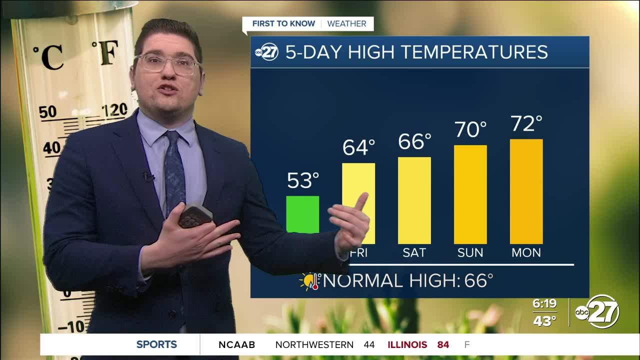 There is no arctic blast coming, but we do still have highs today in the low 50s, and overnight lows tonight in the upper 20s and low 30s. Skies will be starting off cloudy, but we clear up through the afternoon.