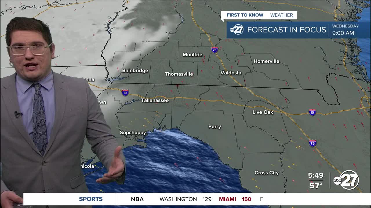 TALLAHASSEE, FL. — This morning, and today in general, will be much like the last few. Mostly sunny to partly cloudy, fog in the morning, and temperatures in the upper 50s and low 60s to start for the day. Even the afternoon is similar with highs once again in the mid to upper 80s. Changes come tomorrow as a cold front comes through.