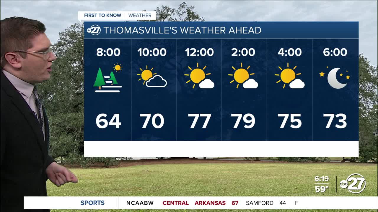 TALLAHASSEE, FL. — Another morning of patchy fog, but it will not be as widespread as it was yesterday. Temperatures to start today will be in the low 60s to the mid 50s.