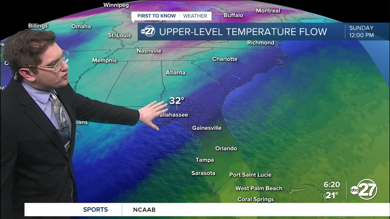 TALLAHASSEE, FL. — Today starts off freezing in the low to mid 20s. The sun does shine in full force, so we do get warmer, but still below average by the afternoon. Highs will likely be in the mid to upper 50s for today.