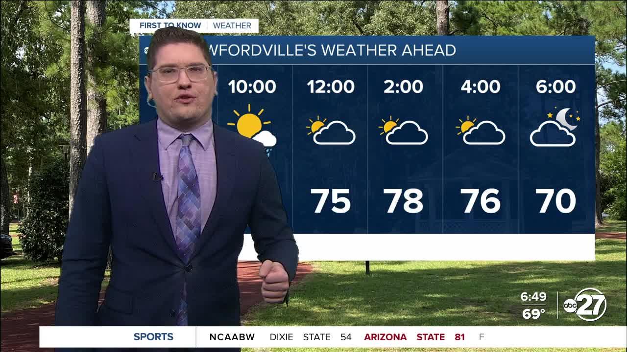 TALLAHASSEE, FL. — Rain is pushing through this morning, mainly along the coastline. The system itself will weaken as it moves through our area, ending completely by 9 A.M. Temperatures to start will be in the low 70s and upper 60s. Fog remains patchy and, in some areas, dense again this morning. This will be focused mostly along I-75.