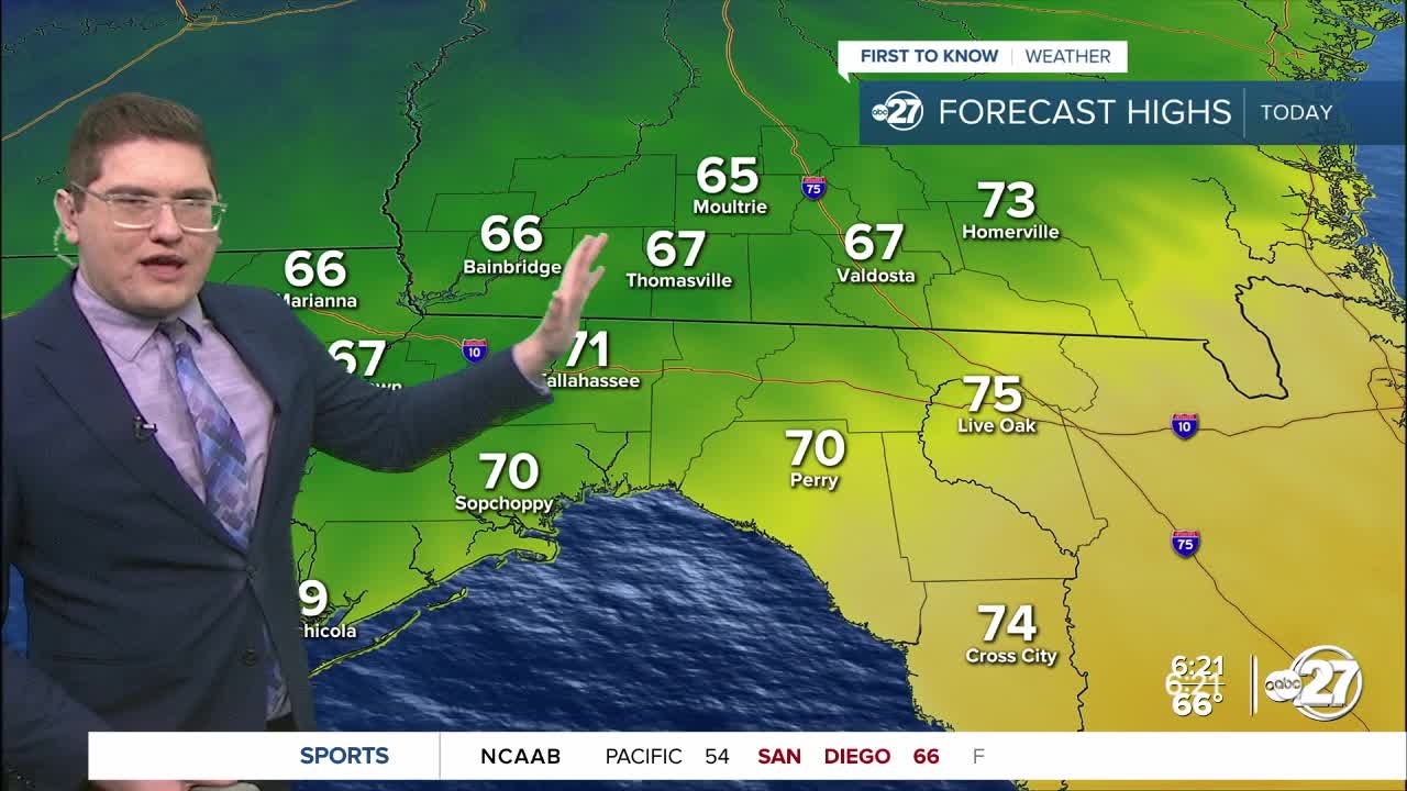 TALLAHASSEE, FL. — Today will be the last warm day of 2025. We start off humid and in the mid to low 60s this morning. Patchy dense fog will be possible, focusing along the coastline and our southeast counties. Highs will only reach the low 70s and upper 60s before the front pushes through.