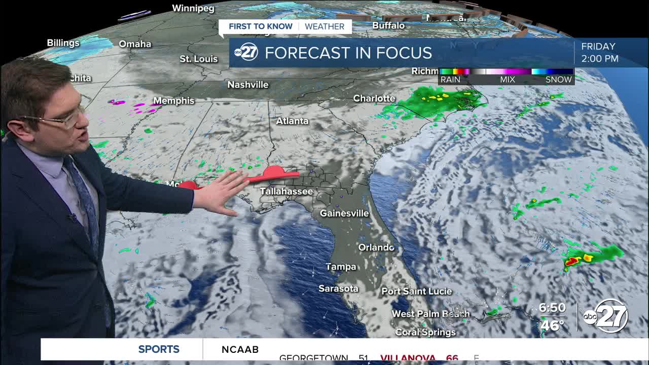 We are keeping an eye to the weekend. While many across the south will be dealing with ice, freezing rain, and snow, we will be warm in the 70s. We will get our fair share of rain from Sunday night into Monday morning. There is also potential for thunder, but it will be a mostly rain event. We drop in temperature dramatically back to freezing heading into next week after the rain.