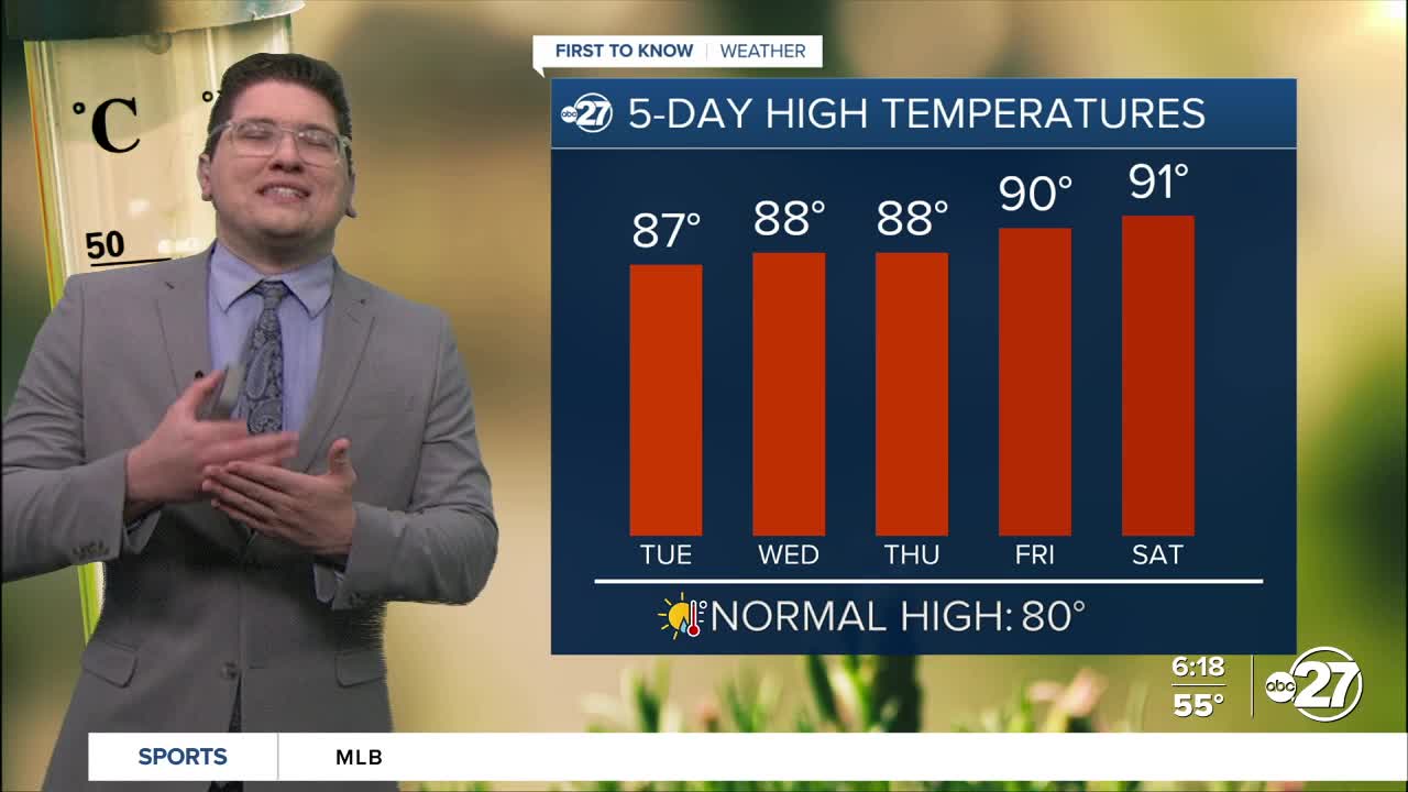 Today is the beginning of the warming trend, so expect upper 80s for the rest of the week. We are still on track to match record temperatures by Friday and Saturday in the low 90s.