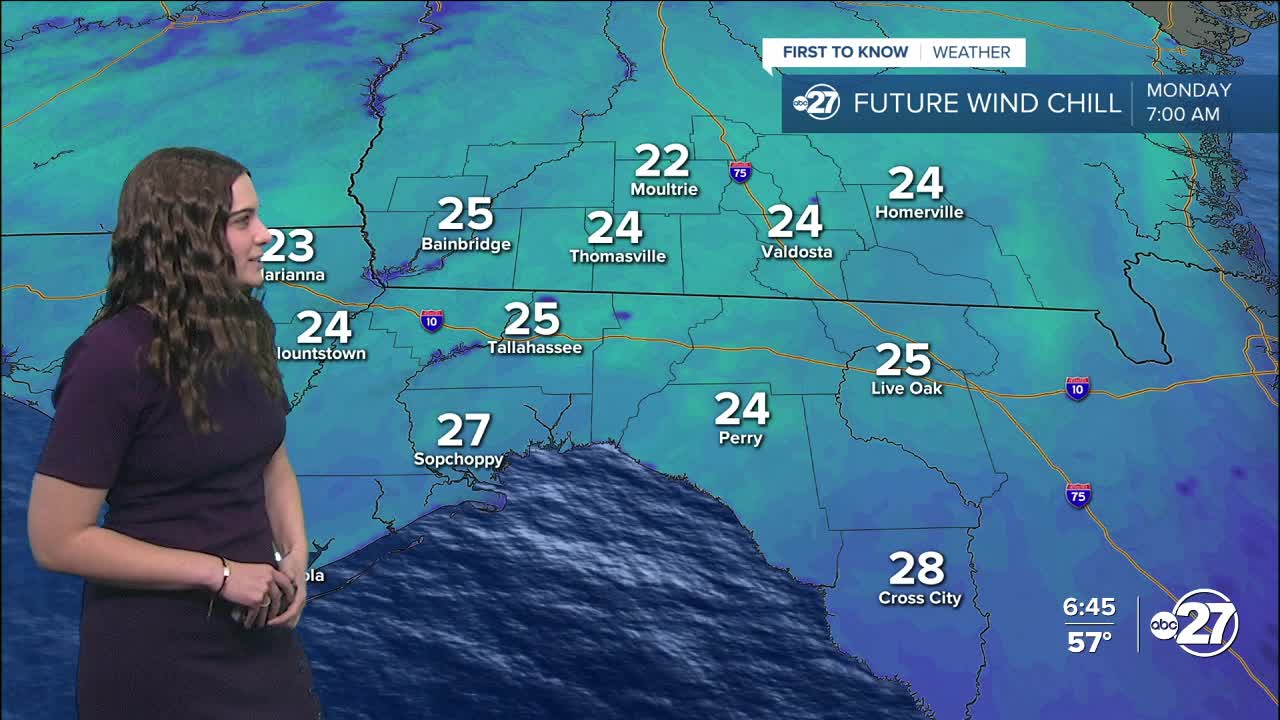 TALLAHASSEE, Fla. (WTXL) — The cold air has arrived and we have dropped about 20 degrees so far, but the biggest drop will be felt Sunday night and Monday morning.