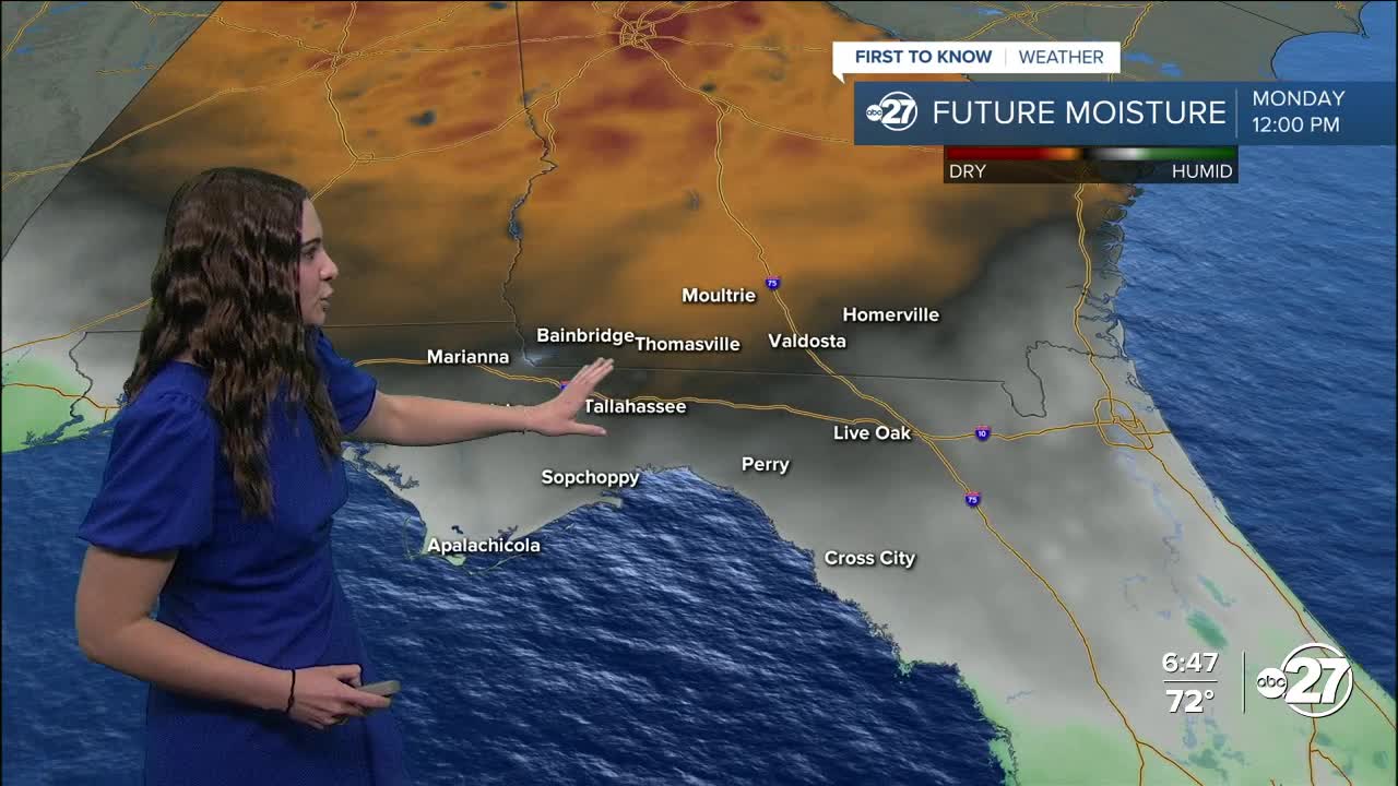 TALLAHASSEE, Fla. (WTXL) — A weak cold front is right on our doorstep and will move through the area later Sunday night. A spotty light shower is possible overnight, but mainly partly cloudy skies.