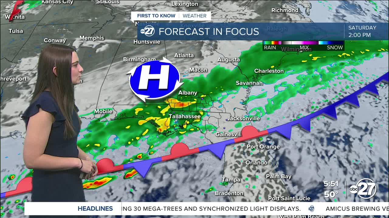 TALLAHASSEE, Fla. (WTXL) — A low pressure system is on its approach as we saw a warm front that is attached to it push through early Friday morning. This will cause quite the divide in temperatures throughout the day Friday.