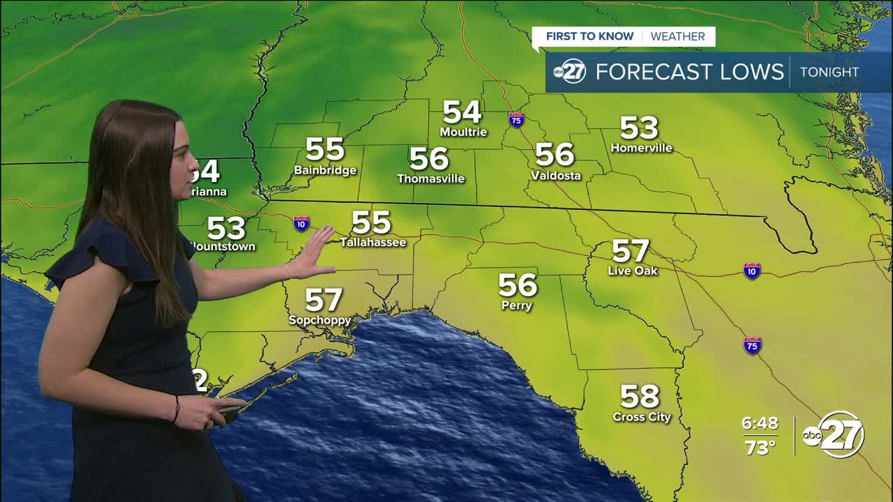 Once the front moves through, temperatures will drop Thanksgiving day to the 60s for highs and upper 30s and 40s for lows. A breeze is expected Thursday night, allowing for wind chills to drop to the low 30s.