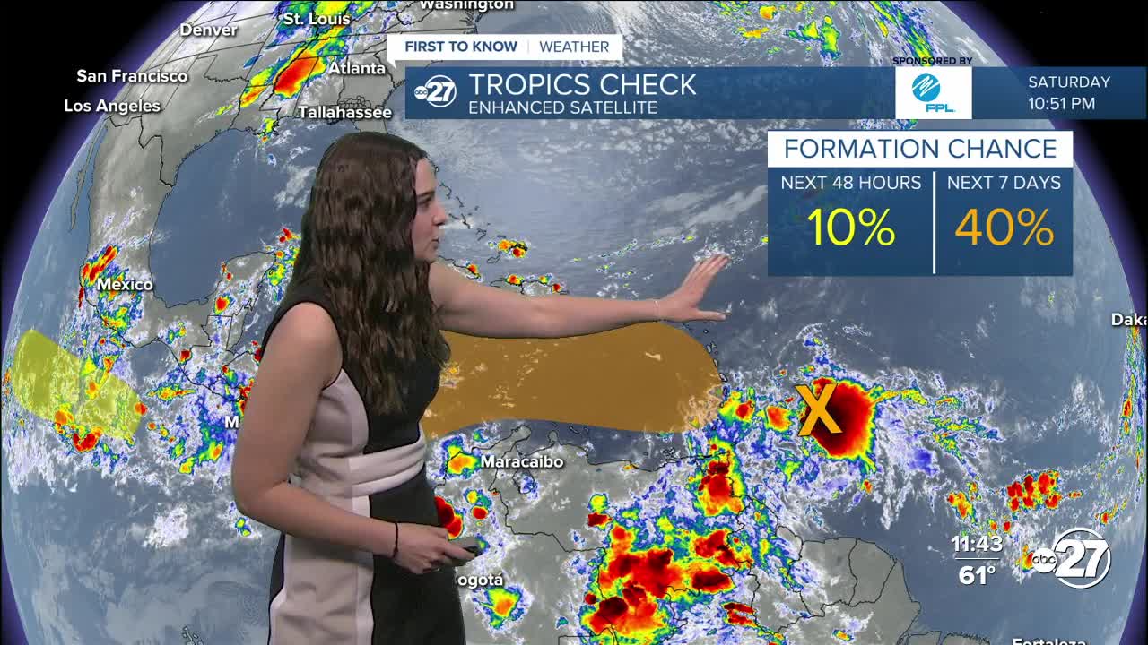 TALLAHASSEE, Fla. (WTXL) — The tropical wave in the central Atlantic has now been designated as Invest 98L. There is currently a 10% chance of development over the next 48 hours and 40% chance of development over the next 7 days. Development has not yet occurred, but is expected to do so once the system enters the Caribbean.